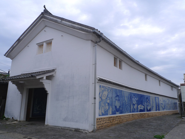 這間很大的「久家大藏」是「久家本店」在1860年開業的酒窖,兩旁有一長條藍白色的瓷磚壁畫,非常醒目而特別。