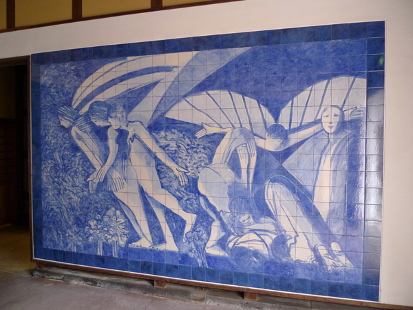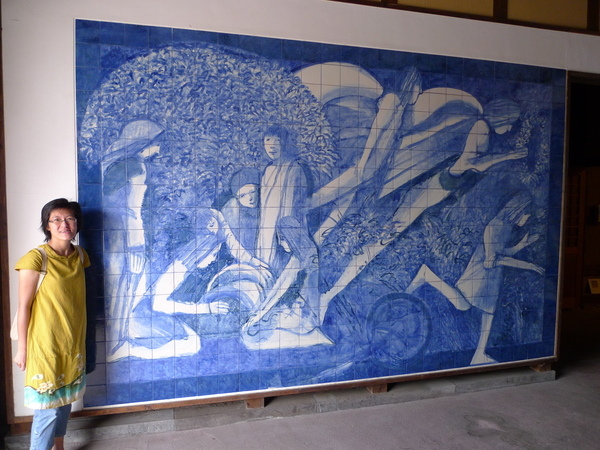 這些大型壁畫是用藍白相間的「葡式磁磚」拼貼而成的,可見當時臼杵和葡萄牙之間的經濟文化交流非常頻繁。