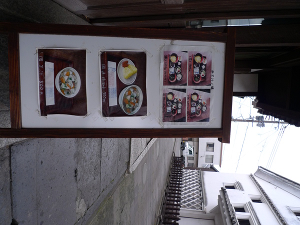 可是天不從人願,本來以為「九州觀光網站」特別推薦的名店一定很好找,沒想到我們的GPS完全搜尋不到,於是開著車子在臼杵街上亂繞尋找,這裡的巷子一條比一條窄,開得我們膽顫心驚,決定把車子停好,徒步搜索比較安全。