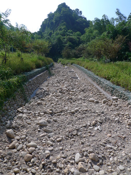 「野溪整治工程」進行中,溪中只見礫石,不見溪水。