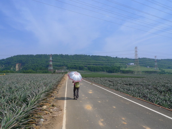 這一路上不是鳳梨田就是果園,毫無遮蔭可言,還好有帶雨傘。
