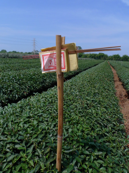 這時老公正好在拍這張特別的照片,農婦告訴我們這叫做「土地公拐」,每年農曆八月才看得到,田裡插上「土地公拐」是為了體貼年邁的土地公爺爺,讓祂方便巡田,有土地公來巡邏,好兄弟和蟲子就別想來搞破壞了,好可愛的習俗!