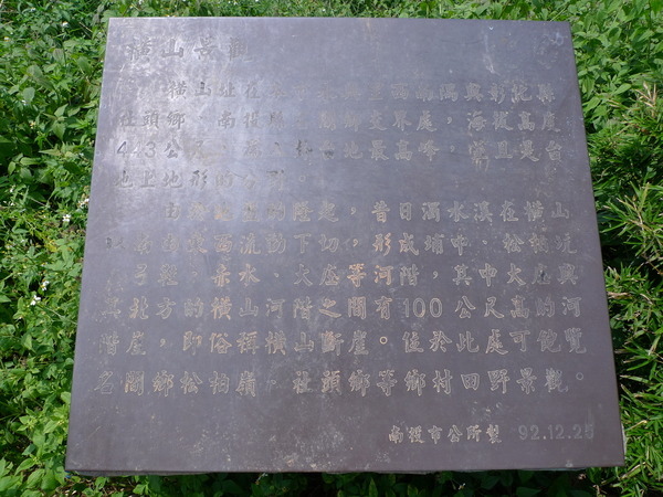 無名基石斜前面的欄杆外有一面「橫山景觀解說牌」,這裡平台視野超好。