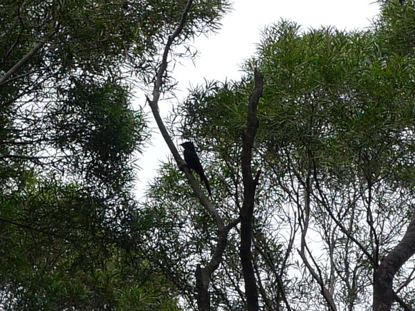 有黑枕藍鶲、五色鳥、綠繡眼、循著叩叩聲找到的小啄木,還有照片中這隻身泛藍光的「小卷尾」。