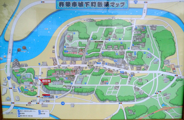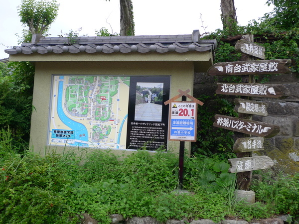 這裡有城下町的地圖,往前走幾十公尺就是通往「北台武家屋敷」的「勘定場の坂」,立刻出發!