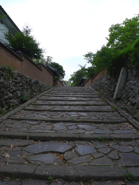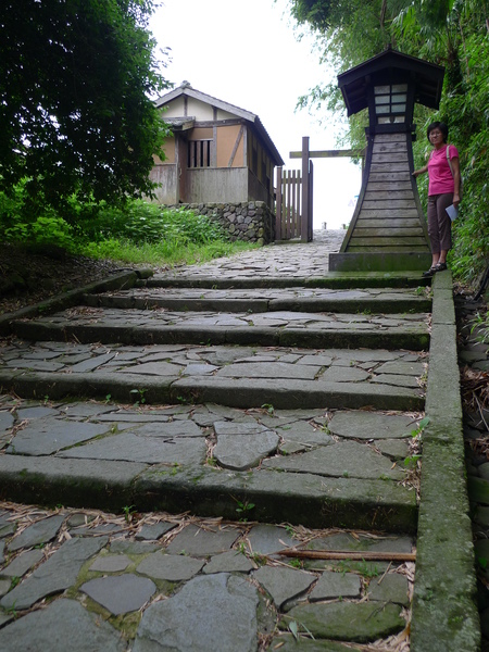 為了方便馬匹與轎夫行走,所以這個「坂」的階梯寬大,坡度和緩,腦海中不禁想像著馬匹、轎子、武士穿梭奔走其間的熱鬧景象。旅遊簡介上說:坂道上還有富士山形和扇子形的石塊,真的嗎?我們沒看到!