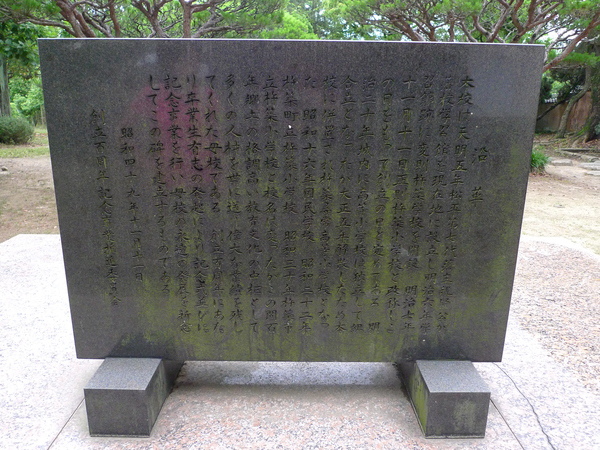 明治四年廢除藩校,改為「杵築小學校」,校園裡立著背著書笈,邊走邊讀書的莘莘學子像。