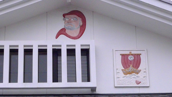 上「勘定場之坂」之前也曾看到這個達磨和船隻的縵繪,海浪下面還有一隻曼波魚,很生動。
