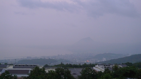 開車來到高速公路的「別府灣SA」時已經晚上七點半,我們很想去的別府溫泉就在眼前,隱約還能看到繚繞的地熱煙霧。