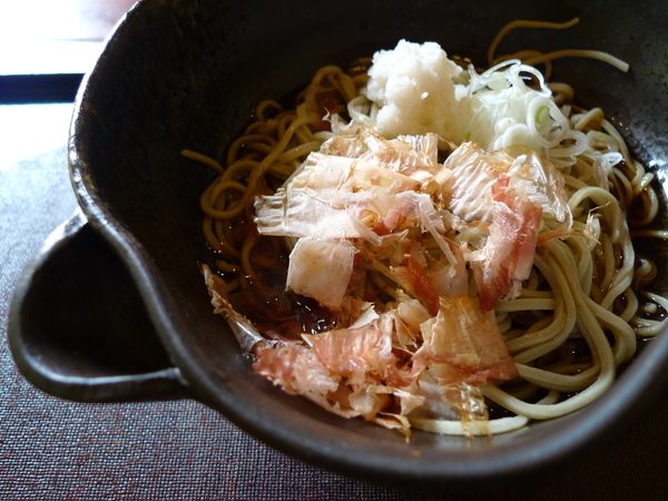 先上的是有蘿蔔泥與柴魚片的手打蕎麥麵(850円),蘿蔔泥特有的辛辣味很重,有點過嗆,不太合我們的口味。