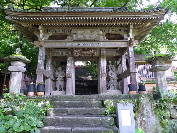 沿著階梯往下走,充滿古味的門樓旁立著兩尊「仁王像」。
