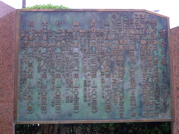 江戶時代後期,他在江戶(東京)的中津藩設立「蘭(荷蘭)學塾」教授洋學,所以當時中津藩蘭學興盛,人才輩出。