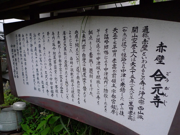 天正十七年(1589年)黑田孝高企圖占領此地,用奸計攻打前領主宇都宮鎮房,在這裡發生激戰,後來為了隱藏戰死家臣與武士們的血跡,把原本血跡斑斑的白牆都塗上大紅色的漆。