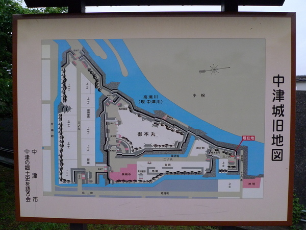 鐵道下的隧道旁有清楚的「中津城和城下町」的舊地圖