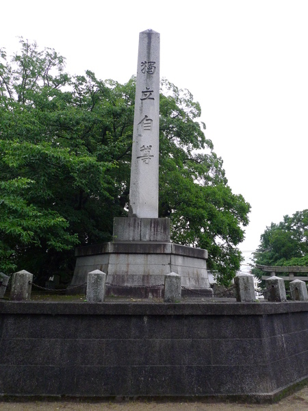 中津城旁邊立著福澤諭吉的最具代表性的話~「獨立自尊」,他死後也以「大觀院『獨立自尊』居士」為戒名。