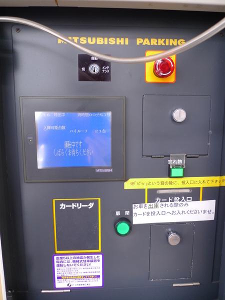 退房之後,櫃檯把我們的停車卡給我們,感應之後,等個幾分鐘,芝麻開門,我們的車子現身,把停車卡丟入感應區的「力-卜投入口」,我們就告別中津市了。