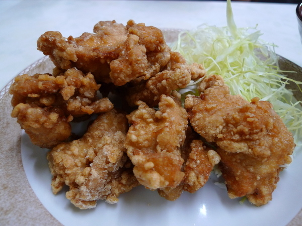 「雞肉唐揚定食(650円)」大分縣名物,很好吃,不輸台灣的無骨鹹酥雞,可是太鹹了一點。