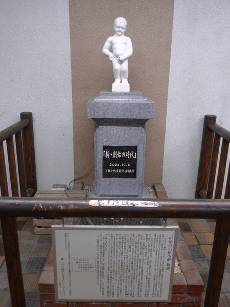 下雨的夜晚,街上沒什麼人,又幾乎沒有店家,我們很快就回到車站,看到這尊應該出現在比利時首都的「尿尿小童」,竟然這裡也有分身。
