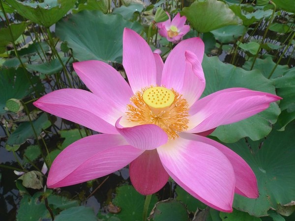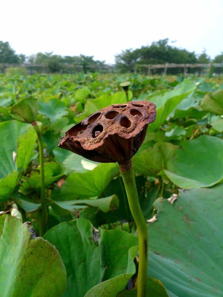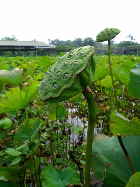 長大後的蓮蓬,裡面長著一顆顆飽滿的蓮子。