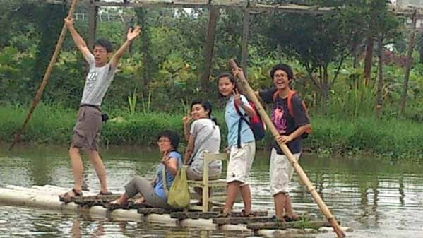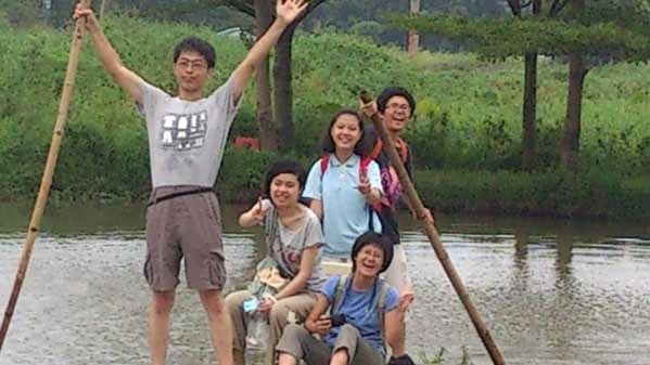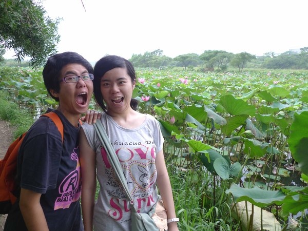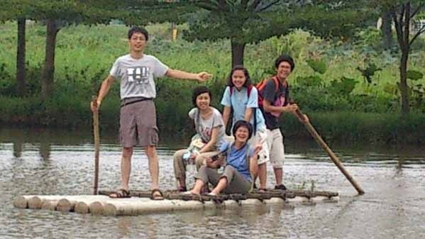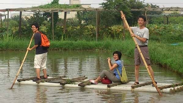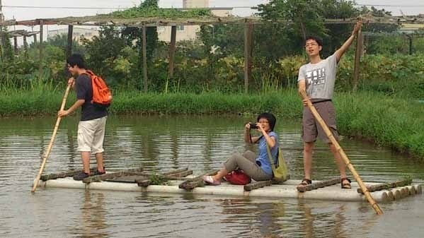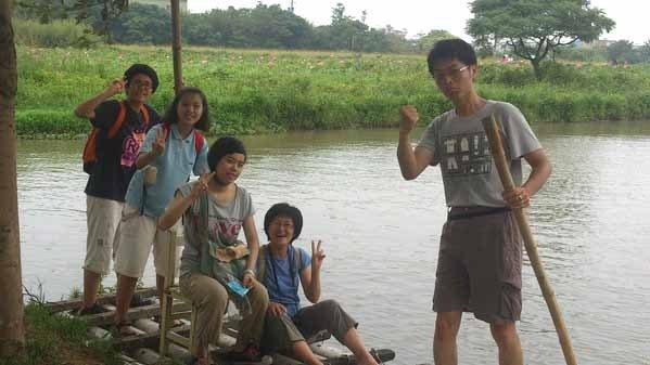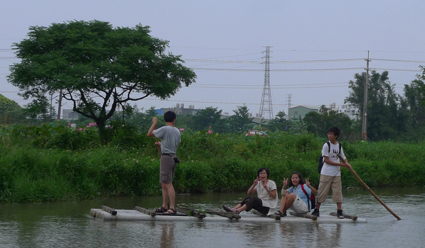 今天看到美麗的荷花,雖然沒有太陽,但是上午九點多的荷花田仍然悶熱地不舒服,偶爾還要留意嗜血的蚊子,這一群high咖不太high得起來。但是,原本只是無聊玩玩的竹筏竟然意外地好玩,不只消暑,而且把大家的玩興都引燃了。