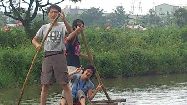 接下來換二姐一家來體驗~舵手一樣是自稱魯夫的老公,船尾由喆喆負責讓竹筏前進。