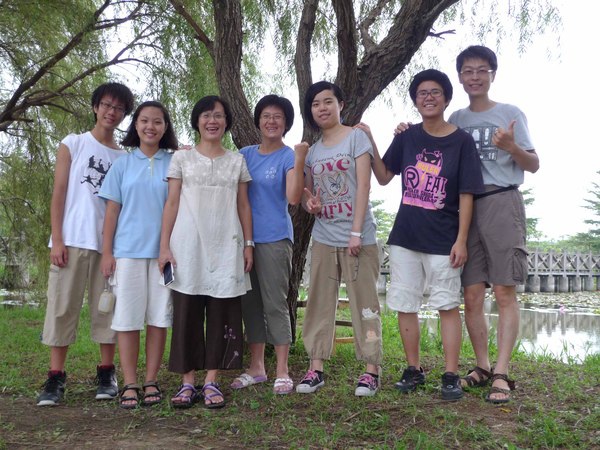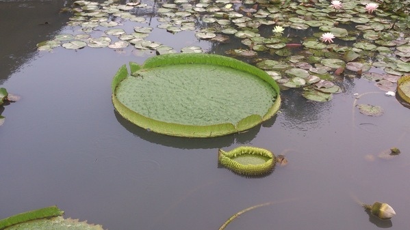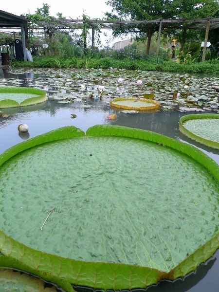 最後,回到入口的睡蓮池,池裡有好多大王蓮,我們沒有人敢去坐。