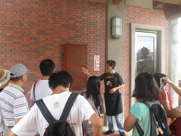 導覽帥哥正在說明的是「第四代繼承人」立書的「郭元益歷史沿革」木牌~~