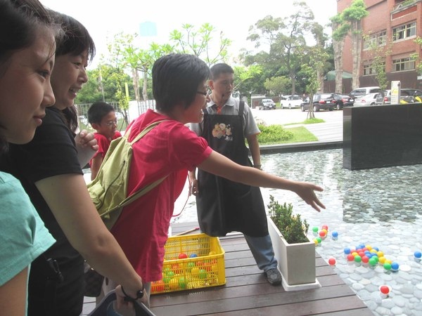 中午戶外舉行丟球遊戲~每人三球,丟進泳圈中央最多顆者勝出