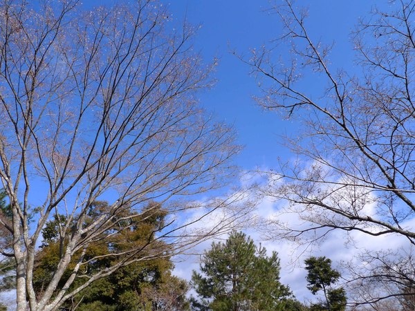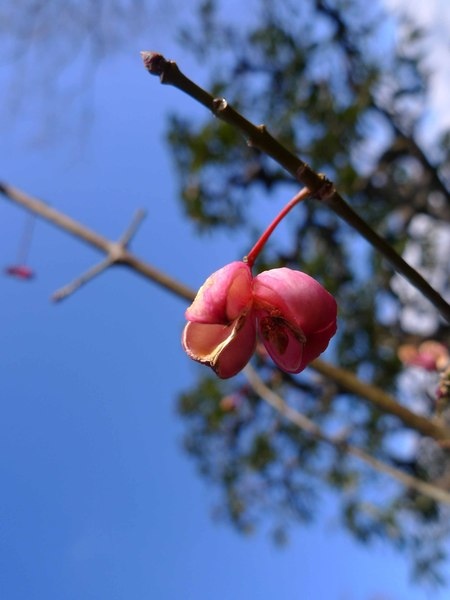 抬頭一望,結著翅果的楓樹,搭配著湛藍的天空,曬著寒冬的暖陽,幸福之感油然而生。