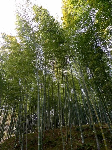 在休憩所稍作休息,山坡上的這片綠竹為這座庭園提供了不同的造景,陽光灑在竹子頂端,忽然間有回到台灣的錯覺。
