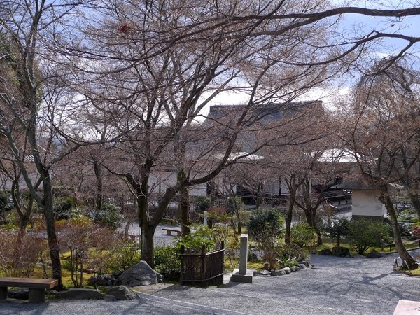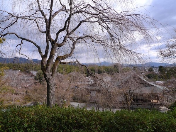 寺內的高點,冬天前來,樹葉盡落,遠處的山景正好ㄧ覽無疑,近處下方是「多寶殿」,再遠一點可以看見上京及中京區一帶的民宅聚落,最遠還可以看見「比叡山」和「大文字山」。