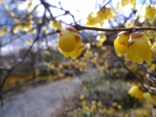 好奇的是,這種開著黃花的植物不知芳名為何?無畏寒冬,依然飄著清香,盡情綻放。