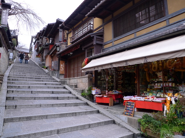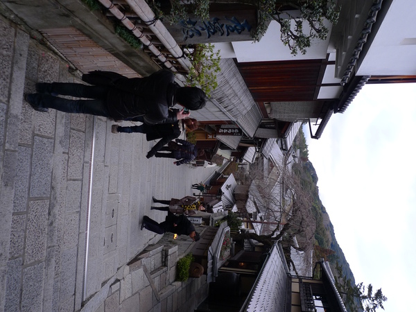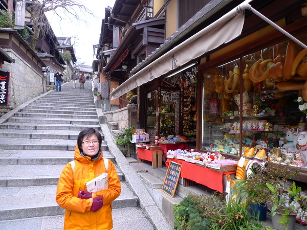 石坂步道兩旁紀念品店、餐館小吃店林立,知名的女詩人兼畫家「竹夢久二」的寓居之所也在這裡,愛逛街的人來到這裡應該會覺得如魚得水,樂不思蜀;但是我們兩個都不會也不愛逛街,所以一下子就把這一段路走完了。