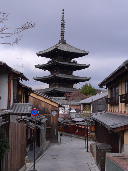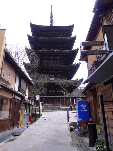 這座46公尺高的五重塔是「飛鳥時代」的聖德太子(西元592年)始創,由朝鮮半島移民而來的豪門「八坂氏」所建,所以叫做「八坂之塔」,現在的正式名稱叫做「法觀寺」。