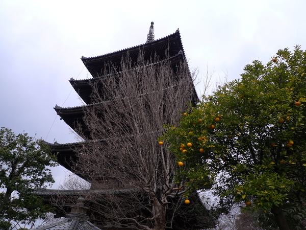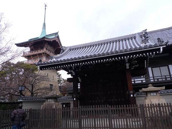 今天不知何因大門緊閉,我們不得其門而入,只好沿著圍牆參觀斑駁的室町時代巨大建築。這麼高大的建築完全沒用釘子,只用接楯搭建,卻能在地震頻仍的日本島上矗立將近九百年歷史,不得不再次讚嘆古代木匠的鬼斧神工。