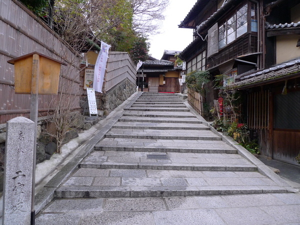 「二年坂」因為建於「大同二年」而得名,這裡也有一小段階梯,所以也有「在此跌倒二年必死」的傳說,有些人不喜歡這樣不祥的名字,於是就取其諧音,改稱為「二寧坂」,正好和「產寧坂」,還有附近的「寧寧之道」互相呼應。