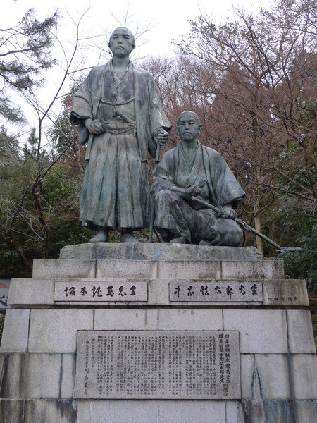 公園裡立著我們佩服的坂本龍馬像,旁邊蹲著的是和他一起遇刺的好友中岡慎太郎。