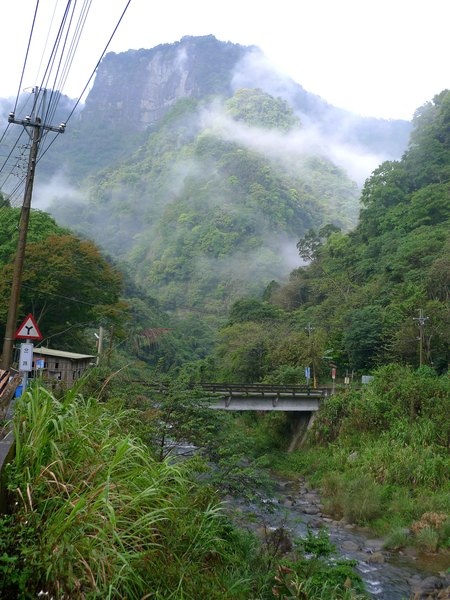 早上7:46抵達「中興派出所」辦完入山證,派出所前方是岩壁裸露,山型特別的「細道邦山」,一早入山,雲霧繚繞,如入仙鄉。