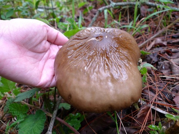 草叢間一朵好大的菇類,比老婆的手掌還要大。