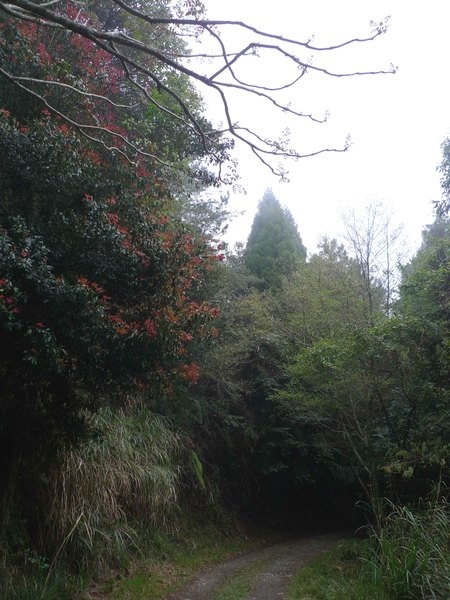 山稜上長滿了高大的杜鵑樹,可惜平地的杜鵑花季還沒爬上山,我們沒有見到半朵杜鵑花。