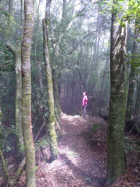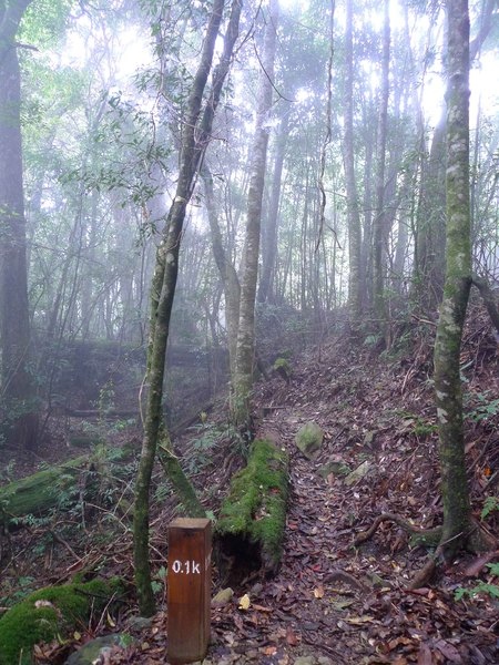 走在原始闊葉林中,每100公尺就會出現木樁,開始有爬山的感覺了。