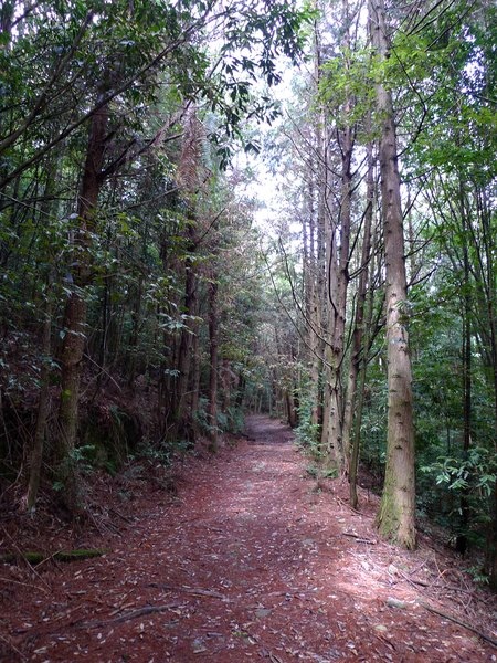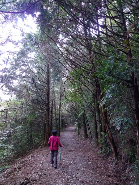 轉個彎,林相立刻變成陰暗濃密的杉木造林。