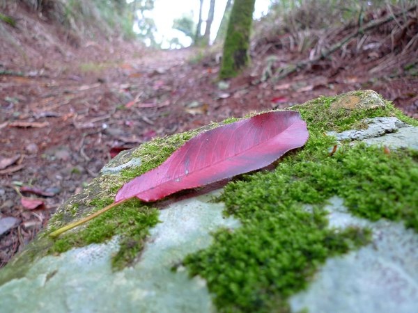 眼前正好一片紅葉落下,讓人有秋天的錯覺。