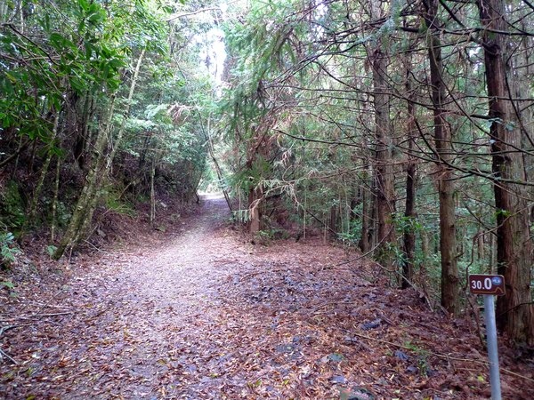 走著走著,看到司馬限林道30.0K的指示牌,研究了一下,右側的司馬限林道到此中斷,無法前行,左側則是通往北坑山頂的木馬道。