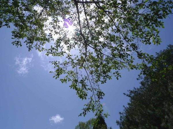 陽光從台灣赤楊的枝縫間透射下來,藍天白雲真令人心曠神怡。