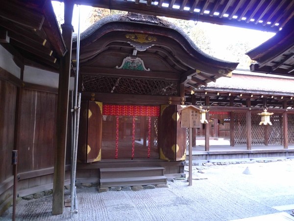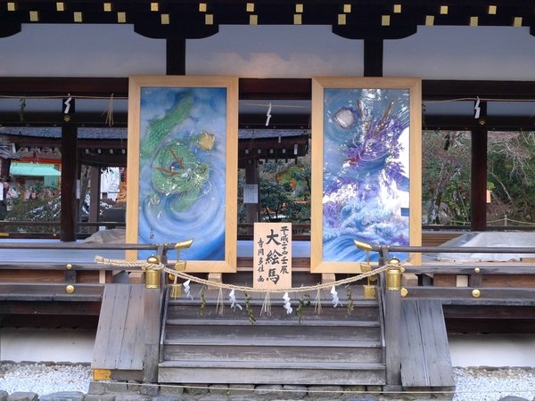 「細殿」中掛著兩幅「大繪馬」,和下鴨神社的「橋殿」一樣。