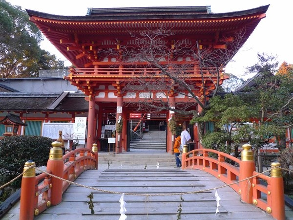 朱紅的「樓門」,和「下鴨神社」風格很像,果然是同一家人。