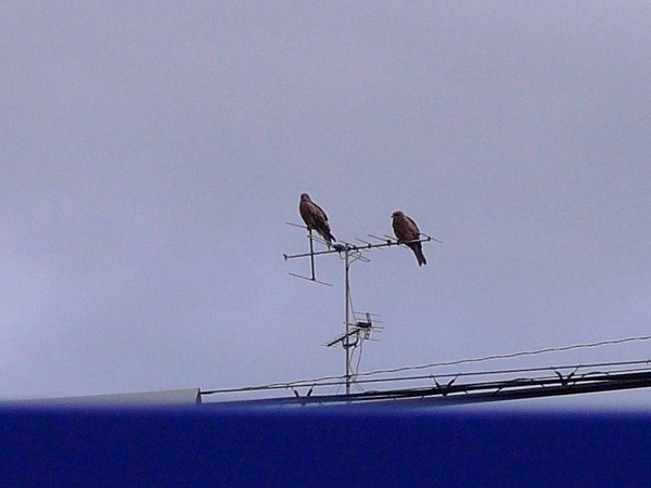 走在柏油路面的參道上,不時聽到老鷹的叫聲,抬頭一看,兩隻老鷹悠閒地停在天線上,台灣的都市很難看到這種畫面!