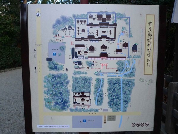 神社全圖,綠色區域就是「糺の森」,「糺」有「詢問」之意,相傳這裡的祭神~「賀茂建角身命」聽到人們的訟事,就能裁斷正邪,因此叫做「糺の森」,現在「家庭裁判所」就設在森林的南方,是巧合?還是刻意安排呢?
