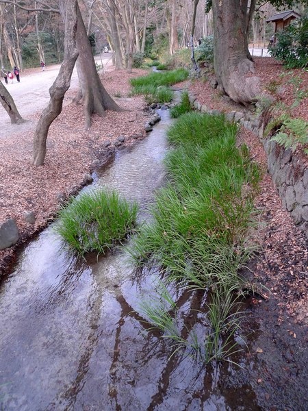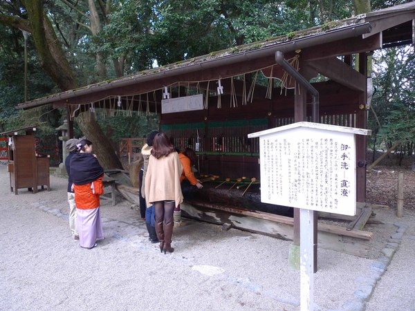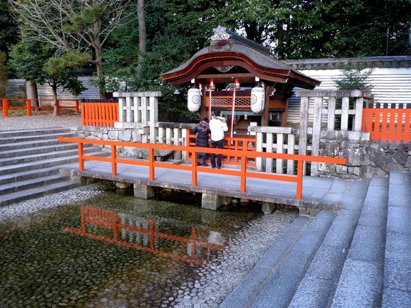 「御手洗池」的下游便是「御手洗川」,每年「土用之丑日」前後四天,這裡會舉行「御手洗祭」~~炎熱的夏天,把腳泡進水溫終年維持在十八度的冷泉中,一定很沁涼舒暢,可是現在正值寒冬,還是拍照就好。